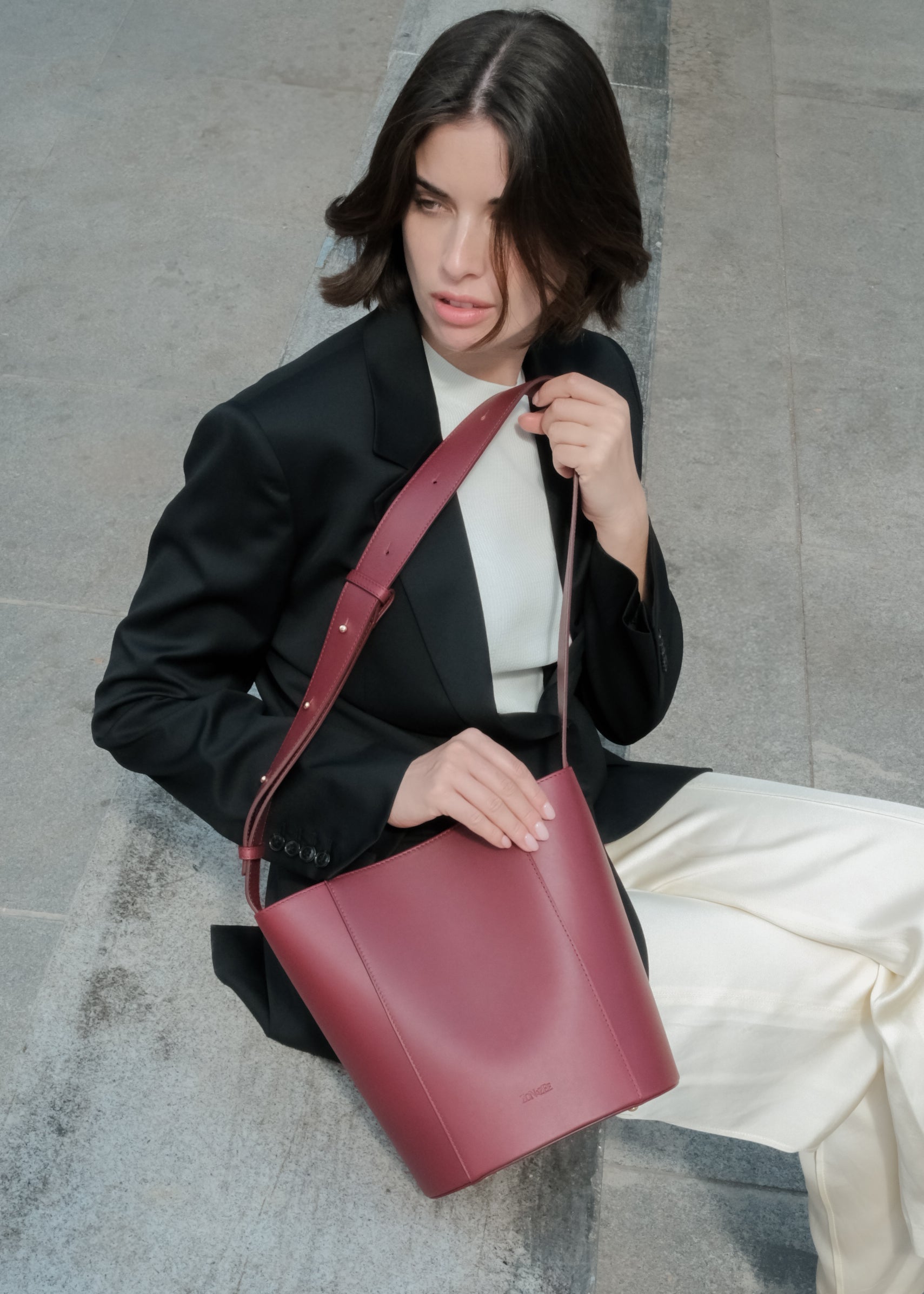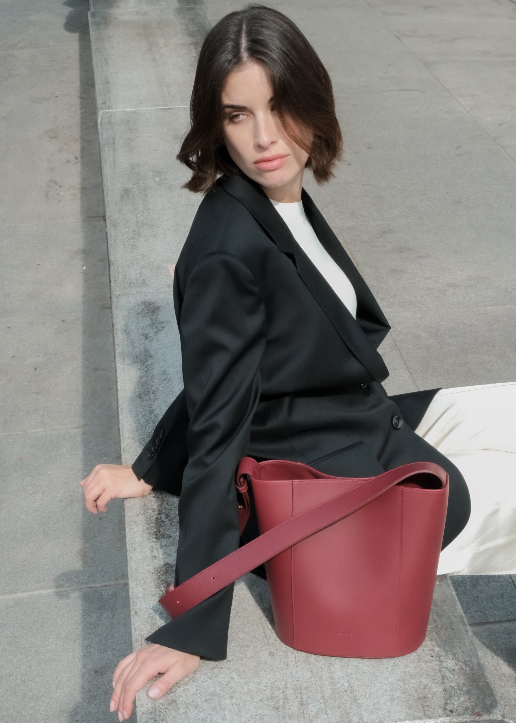 Die Cube Bag in Schwarzkirsche besticht durch ihre schlichte geometrische Form.